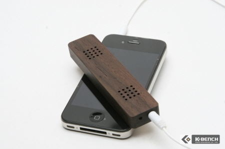 오디오 케이블을 연결하면 보조 수화기 역할을 한다. 원목 소재의 수화기를 통해