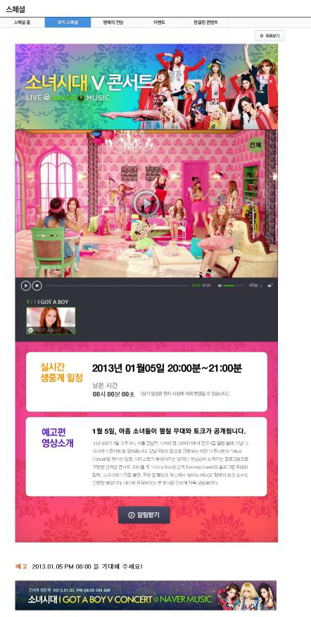 네이버는 이번 ‘소녀시대 V 콘서트’를 통해 <소녀시대>의무대를