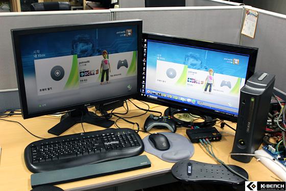 경우에는 바이패스 기능을 갖추어서 한 모니터에서는 지연현상 없이 게임을 즐기면서