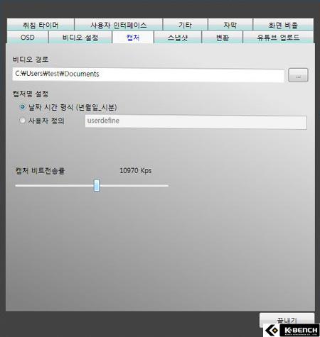 환경설정 항목에서는 녹화 및 캡쳐와 관련된 항목들을 설정할 수 있다. 녹화는
