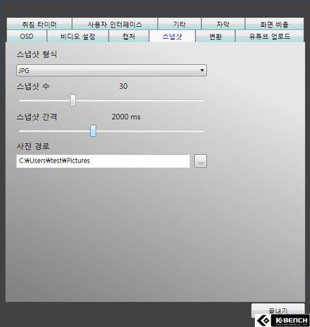 PNG, TIFF 등 4종류의 포맷을 지원하며, 스냅샷 수를 2 이상으로 설정하면 연속으로