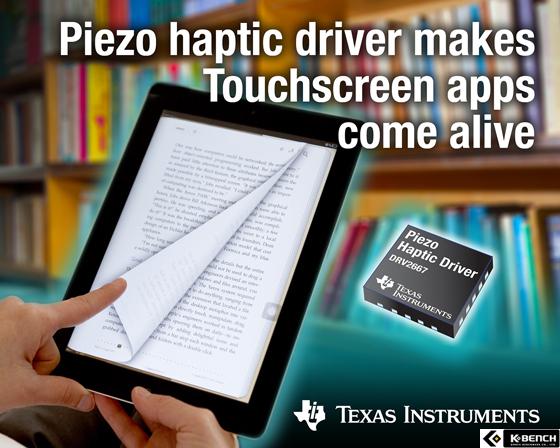 TI는 HD(high-definition) 가전기기, 오토모티브, 산업용 터치스크린 애플리케이션을 위한 업계 최고 통합 수준의 피에조(piezo) 햅틱 드라이버를 출시한다고 밝혔다.