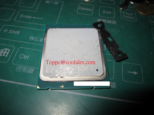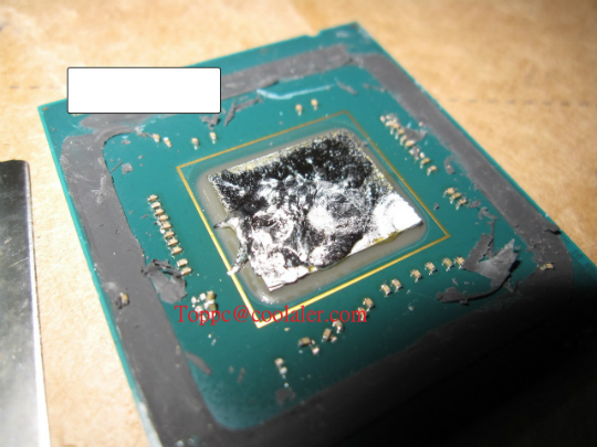 분해한 사진 이미지 상에서 아이비브릿지-E 프로세서는 납땜 방식의 숄더링 접합을