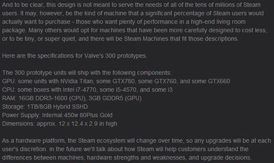 밸브가 발표한 게임용 '스팀 머신'의 프로토타입 사양이 알려졌다.