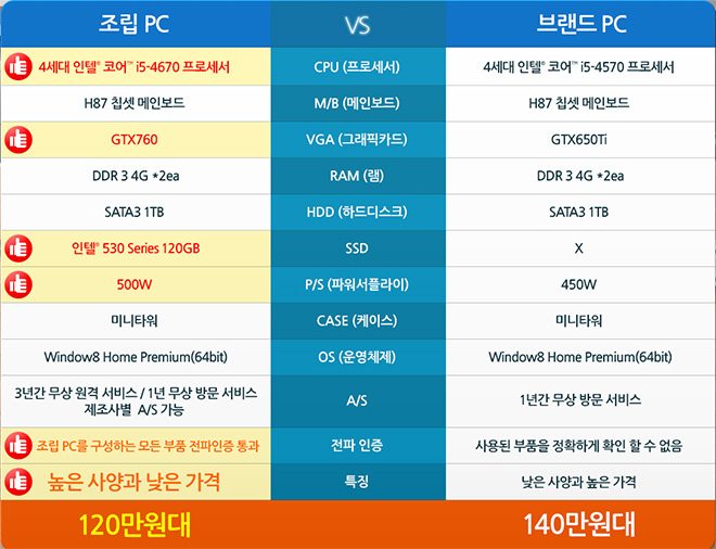 대기업 PC보다 저렴한 가격과 그러면서 같은 값에 더 좋은 성능의