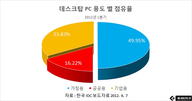 이는 2012년 1분기의 용도별 데스크탑 PC의 점유율 통계를 살피면