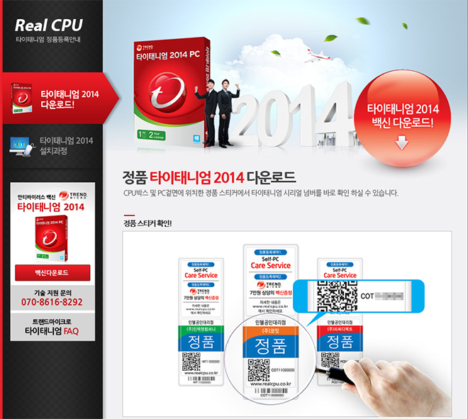코드 스티커를 통해 타이태니엄 백신을 내려 받고 설치할 수 있는 혜택이 주어진다.