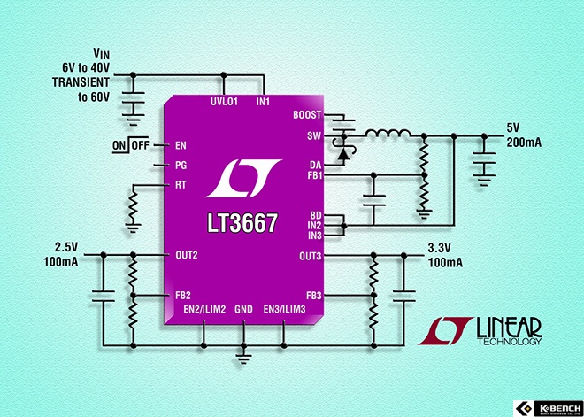 LT3667은 자동차 및 산업용 애플리케이션에 적합한 트리플 출력을