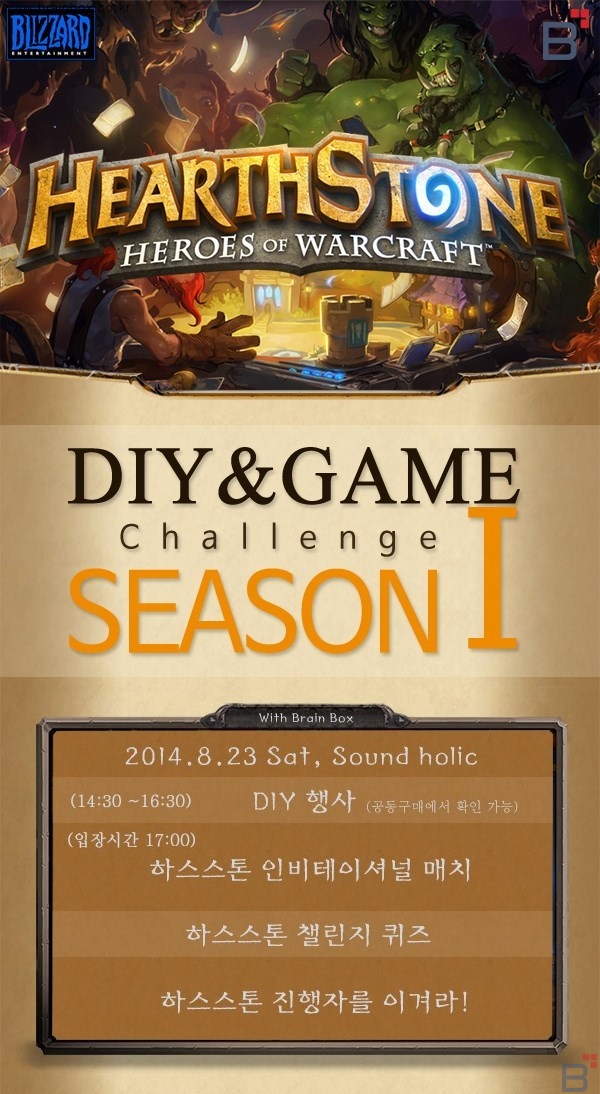 "DIY&GAME Challenge 시즌1: 하스스톤"은 2014년 8월 23일 토요일 오후 5시부터 DIY행사 미참여한 일반인도 입장 가능하며, 참여하는 관객 중 선착순 30명에게는 TP-LINK 에코백과 부채, 스카이디지털 마이크로 5핀 마그네틱 USB 케이블과 대형 마우스 패드를 선물로 증정하며, 이후 입장하는 70명에게는 TP-LINK 에코백과 부채, 그리고 대형 마우스패드를 선물한다.