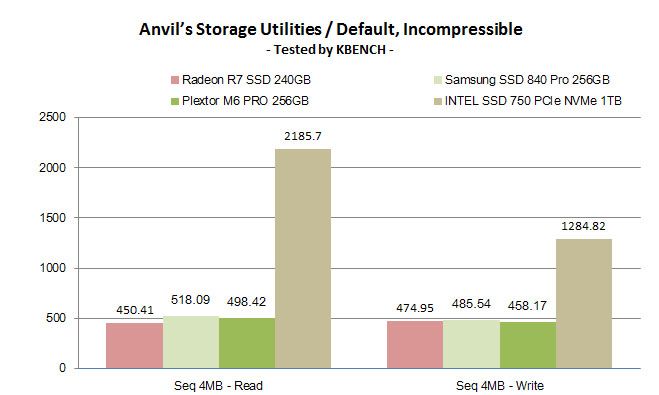 급이 다른 제품들이라서 비교 자체가 무의미 하지만 그래도 NVMe&PCI EXpress 기반 SSD의 성능이 기존 제품 보다 얼마나 빠른가를
