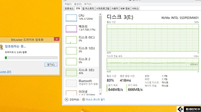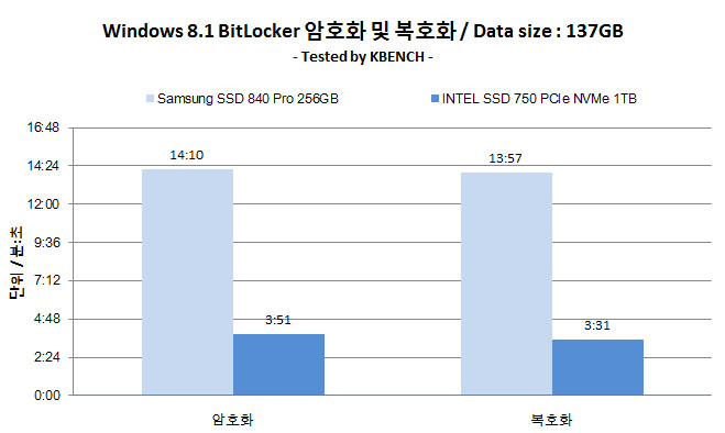 암호화 및 복호화는 윈도우 8.1이 자체 제공하는 Bitlocker를 이용했으며 테스트에 이용한 데이터 용량은