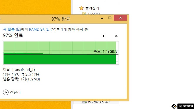 진정한 가치를 평가할 수 있을 만큼 빠른 속도가 제공되는 복사용 스토리지 없기 때문에 가상의 램디스크를 만들어 파일 복사 속도를 비교해 봤는데