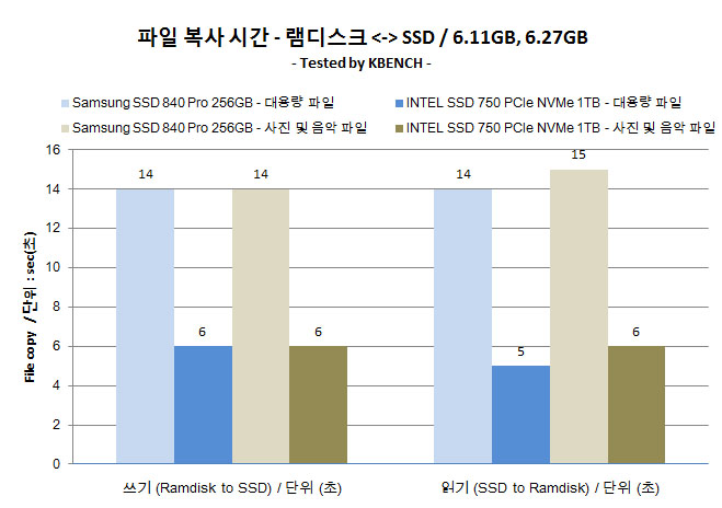 파일 복사 시간에서도 인텔 SSD 750 1.2TB의 진가는 그대로 드러났다. 인텔 SSD 750 1.2TB의