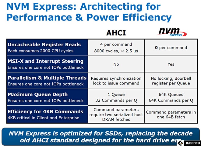 다중 코어로 진화된 프로세서에 맞춰 멀티 코어에도 대응이 가능해 AHCI에서는 꿈도 못 꿀 대량의 커맨드 처리가 가능한 것이 NVMe다.