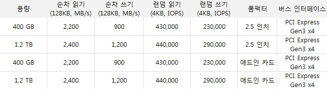 재미있는 건 인텔이 이미 출시한 서버용 NVMe SSD DC P3700과 소비자용 NVMe SSD 750
