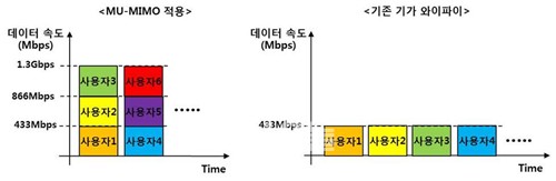 하지만, ‘MU-MIMO’ 상용화 시 1.3Gbps를 3명에게 433Mbps씩