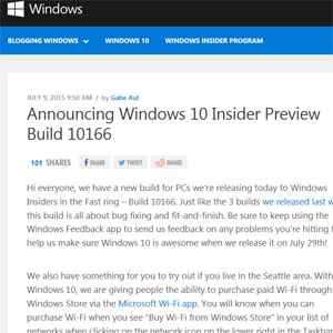 마이크로소프트가 윈도우10 체험판 참가자를 위한 빌드 10166을 공개했다.