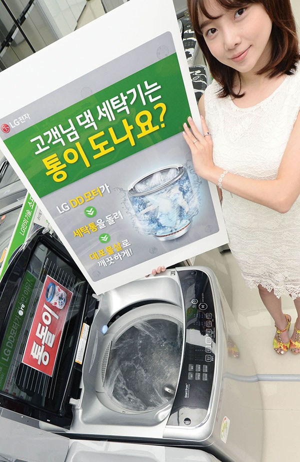 LG전자는 올해 출시한 전자동 세탁기 모두 세탁통이 돌아가는 통돌이 방식을 적용하고 있다. LG 통돌이 세탁기의 DD모터는 업계 최초로 세탁통과 직접 연결해 세탁통에 힘을 전달하는 데 효율적이기 때문에 강력한 ‘대포물살’을 만들어 낼 수 있다.