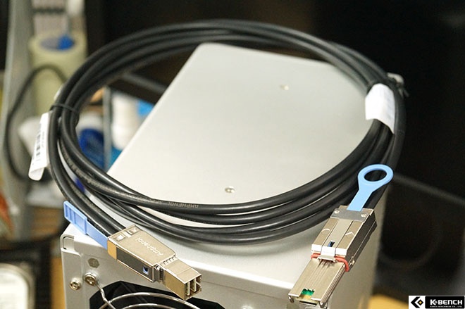 ▲ SAS HD 케이블로 스타덤(STARDOM) ST8-U5 장비를 연결했다.
