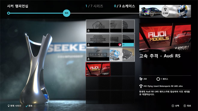 포르자 모터스포츠 7의 싱글플레이라고 볼 수 있는 드라이버즈 컵에서는 플레이를 통해 트로피 등급을 올려가게되는데, 이때 다양한 모드를 경험할 수