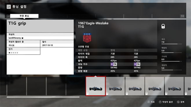 먼저 각종 내부 부품들을 새로이 구매해 업그레이드도 가능하며 튜닝 설정을 통해 타이어, 기어비, 얼라이먼트, 안티롤 바, 스프링 등 다양한