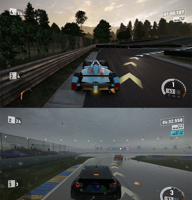 있으며, 이번작에는 특히 날씨에 대해 많은 신경을 쓴듯한 모습으로, 비가 오거나 할때 매우 현장감 있는 레이싱을 제공한다.
