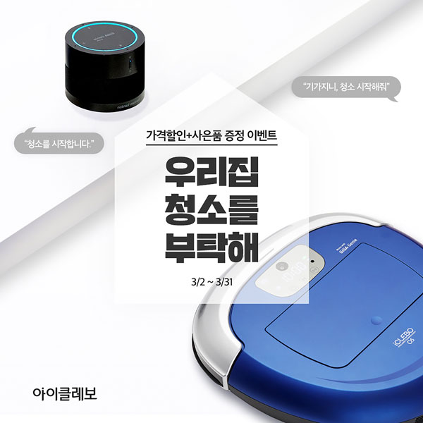 로봇전문기업 유진로봇이 3월 한 달 간 본사 직영의 아이클레보 공식몰 아이클레보닷컴 및 온라인 쇼핑몰에서 다양한 이벤트와 풍성한 할인 혜택을 제공하는 프로모션을 실시한다고 27일 밝혔다.
