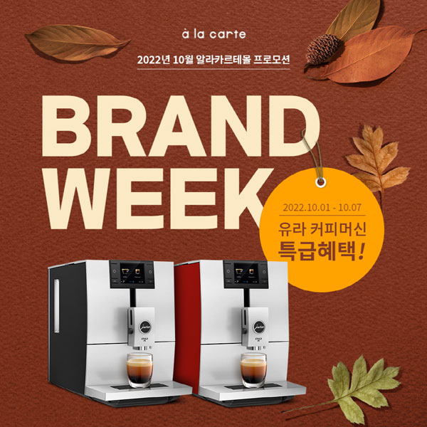 스위스 전자동 커피머신 브랜드 유라(JURA)가 10월 1일부터 7일까지 공식 온라인몰 알라카르테몰에서 '브랜드 위크'를 진행한다.