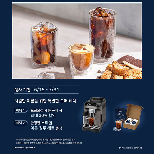 이번 드롱기의 아이스 홈카페 프로모션은 전국 백화점과 하이마트, 일렉트로마트 그리고 온라인몰에서 만나볼 수 있다.
