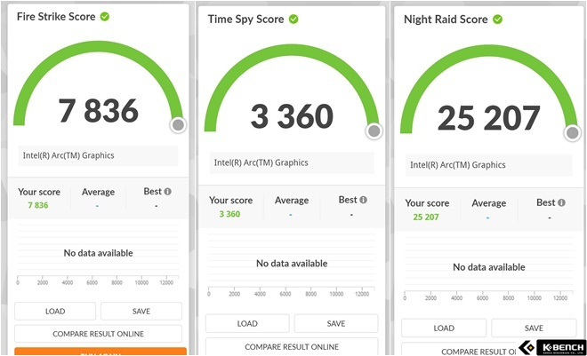 파이어스트라이크나 타임스파이, 나이트레이드 같은 3DMark 벤치마크에서 기존 Xe iris가 도달하지 못했던 점수를 보여주고 있다.