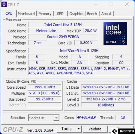 코어 및 스레드는 14코어 18 스레드로, P코어가 4개, E코어가 8개, 새롭게 더 추가된 저전력 E코어가 2개인 구성이다. 최대 클럭은