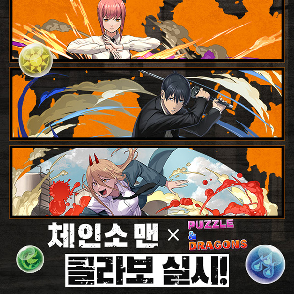 겅호 온라인 엔터테인먼트에서 개발하고 모바일 콘텐츠 전문 기업 그라비티 네오싸이언에서 서비스 중인 모바일 퍼즐 액션게임 퍼즐앤드래곤이 인기 애니메이션 체인소 맨과의 콜라보레이션을 실시한다.