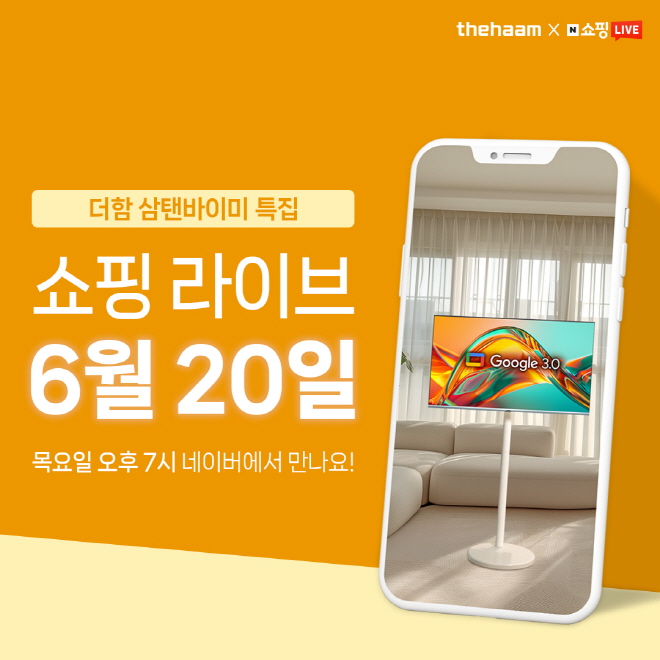 더함(더바오파트너스 대표: 김승진)이 6월 20일 목요일 24년형 삼탠바이미 무빙 TV 특집 쇼핑라이브를 진행한다.