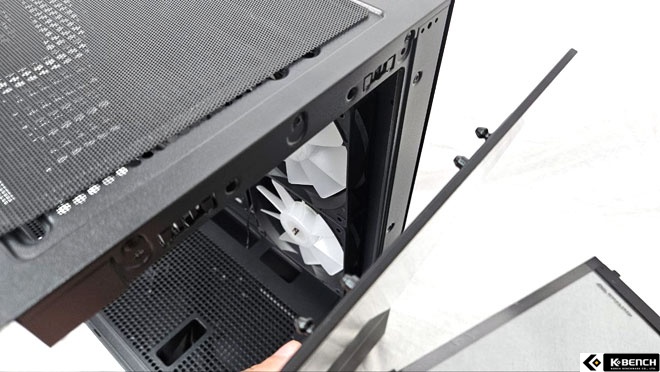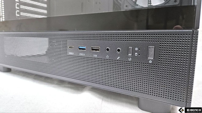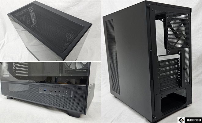 후면부나 상단부는 다른 여타 케이스와 크게 다르지 않지만, 메쉬를 적극 활용해 공기 흐름을 막지 않는 모습의 디자인을 구축하고 있다.