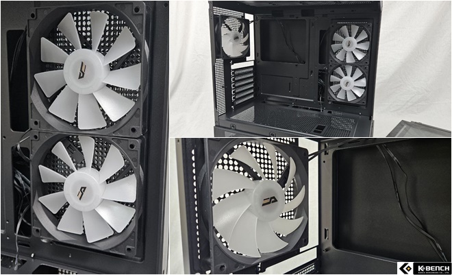 만약, 추가적인 팬을 장착하고자 하며, RGB LED 팬을 장착할 생각이라면, 하단팬의 경우에는 리버스팬으로 장착해 외적 RGB LED