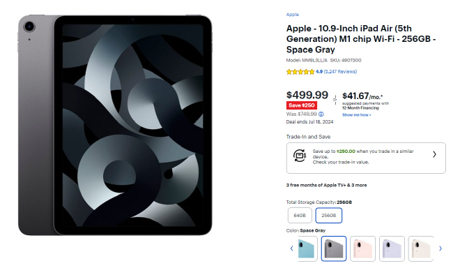한편, 베스트바이 7월 블랙프라이데이 프로모션에서는 아이패드