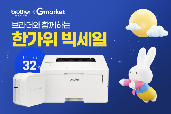 글로벌 프린팅 전문기업 브라더인터내셔널코리아(이하 브라더코리아)가 G마켓 ‘한가위 빅세일’ 프로모션에 참여해 인기 제품 25종을 최대 약 32% 할인된 가격으로 제공하는 특별 프로모션을 진행한다고 밝혔다.