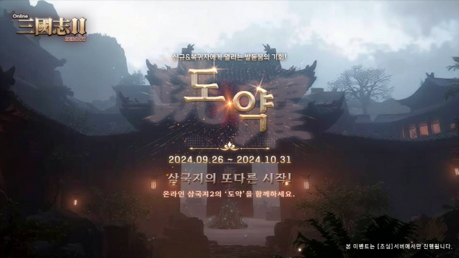 9월 26일부터 진행하는 신규유저&복귀유저 프로모션 이벤트인 ‘도약’ 시즌은 30일 이상 게임에 접속을 하지 않은 캐릭터를 비롯하여 신규 생성 캐릭터를 대상으로 게임에 접속시 +9남만무기와 +5등갑옷 장비세트, 절영(6단계 전마)를 제공하며 이는 현재 최상위 던전인 업성2차 지역을 제외한 모든 구역을 즐길 수 있는 수준에 달하는 막대한 혜택이다.