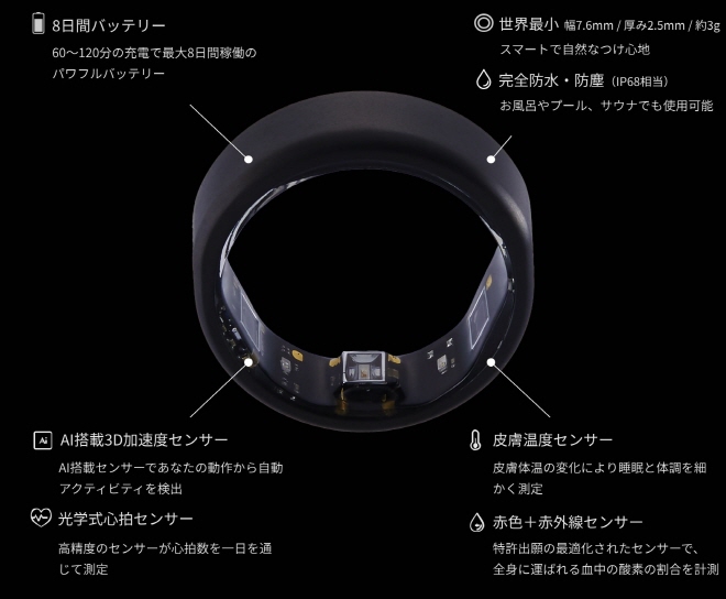 이들 LED 및 센서 제품들은 소형 크기와 2-in-1 적외선 및 가시광을 생성할 수 있는 능력 덕분에 선택되었다. 이와 함께 매일 장시간 착용하도록 설계된 SOXAI 스마트 링에 필수적인 배터리 열 관리 및 기기의 전력 소비를 가능한 한 낮게 유지하는 능력도 주요 선택 기준으로 작용했다. 결국, 현재 출시 중인 SOXAI 스마트 링의 업데이트된 업그레이드 버전을 생산하기 위해 ams OSRAM의 센서가 선택된 것이다. 폭 7.6mm, 두께 2.5mm, 무게 약 3g에 불과한 이 센서를 통해 이 슬림한 손가락 주얼리는 세계 최소형 스마트 링이라는 타이틀을 유지할 수 있게 되었다. 배터리는 60 ~ 120분 충전으로 최대 8일간 전력을 제공할 수 있다.