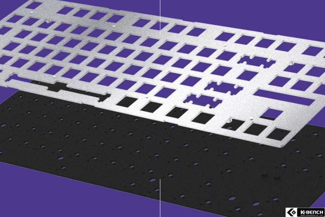 중요한 스위치에 대해선 바로 뒤에 후술 하기로 하고, 내부에는 아노다이징 알루미늄 플레이트가 적용된 모습을 볼 수 있어 타건감에 있어서