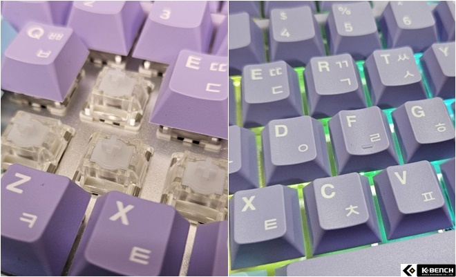 나머지 키캡에는 베이스 바디 보다 조금더 진한 보라색 컬러가 적용 되어 있는 것을 볼 수 있다.