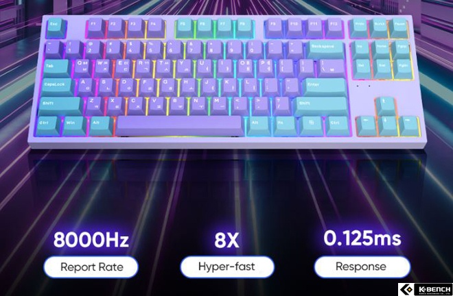 여기에 더해 기존에 1000Hz의 폴링레이트를 더욱 8배 향상 시킨 8000Hz, 일명 8K 폴링레이트가 요즘 게이밍 키보드에 도입되고