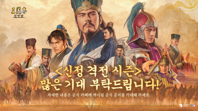쿠카 게임즈는 자사가 서비스하고 있는 삼국지 소재의 시즌제 모바일 전략 시뮬레이션 게임(SLG) ‘삼국지 전략판’ 신정 격전 시즌 업데이트를 실시한다고 18일 밝혔다.