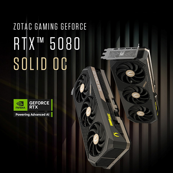 ZOTAC GAMING 지포스 RTX 50 시리즈는 완전히 새로운 디자인으로 재탄생한 ZOTAC GAMING 지포스 RTX 5090 SOLID OC, ZOTAC GAMING 지포스 RTX 5080 SOLID OC, ZOTAC GAMING 지포스 RTX 5080 SOLID로 우선 만나볼 수 있다.