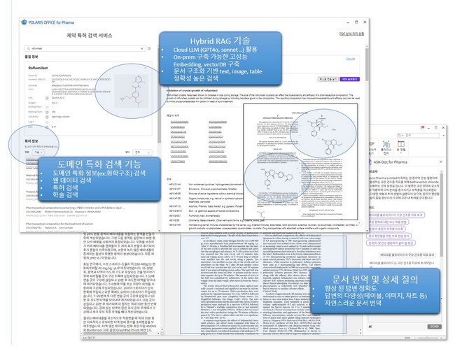 이번 개발은 지난해 11월 출시한 ‘폴라리스 오피스AI Business’에 검색증강생성(Relevant Answer Generation, RAG) 기술을 활용한 도메인에 특화된 AI 모델로, 제약 업계의 정보 접근과 분석을 한층 개선하여 출시할 예정이다.
