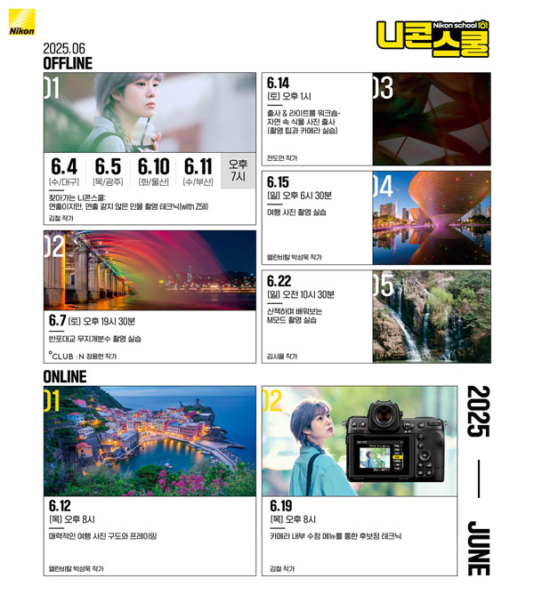 먼저, 이번 니콘스쿨은 수강생들의 요청을 반영해 울산, 부산, 광주, 대구 등 주요 지역으로 직접 찾아간다는 점이 특징이다. 6월 4일과 5일에는 대구와 광주, 10일, 11일에는 울산과 광주를 찾아 총 4회에 걸쳐 ‘찾아가는 니콘스쿨: 연출이지만, 연출 같지 않은 인물 촬영 테크닉(with Z5II)’ 강의를 진행할 예정이다. 본 강의에서는 니콘 Z5II 카메라를 활용해 자연스러운 인물 촬영 노하우를 전수하는 과정으로, 초보자도 쉽게 따라할 수 있는 연출 기법을 배워볼 수 있다.