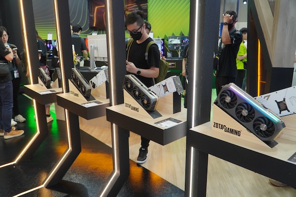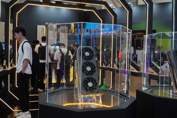 가장 먼저 눈길을 끈 것은 엔비디아 블랙웰(NVIDIA Blackwell) 아키텍처 기반의 ZOTAC GAMING GeForce RTX™ 50 시리즈 GPU다. 전반적으로 인피니티를 주제로 한 구성은 화려하게 관람객을 반겨준다. 그리고 양열에 다양한 최신 그래픽카드를 확인하는 식이다.