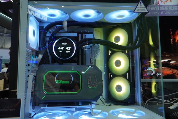 조텍은 ArcticStorm AIO라는 이름의 일체형 수랭 쿨러 모델을 공개했는데, 360mm 라디에이터와 세 개의 팬으로 구성된 O?Rinan 쿨링 시스템을 장착해 최강의 냉각 성능을 자랑한다. 여기에 조텍 특유의 인피니티 미러 디자인이 적용되어 전면부와 라디에이터 가늠자에 걸친 LED 조명으로 시각적 임팩트를 극대화했다.