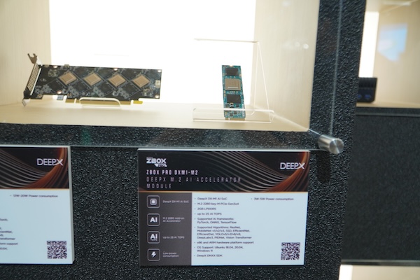 AI 엣지를 겨냥한 ZBOX PRO 임베디드 솔루션 또한 눈길을 사로잡았다. NVIDIA Jetson SUPER ARM 유닛·Rockchip SoC 기반 AI PC·임베디드 MXM GPU 모듈·DeepX·Axelera AI 가속기를 장착한 ‘ZBOX PRO AI BOX’가 전시에 나왔으며, 최대 856 AI TOPS 성능을 제공하는 차세대 AI 가속기로 주목받았다. 엔비디아 블랙웰 세대의 임베디드 MXM 모델 4종도 현장 공개돼, 장기 공급과 하드웨어 워치독 기능 등 상용화를 위한 필수 조건을 충족했다.