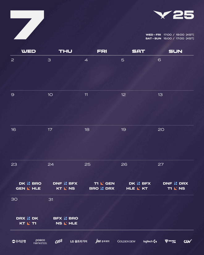 라이엇 게임즈가 개발 및 서비스하는 '리그 오브 레전드(LoL)'의 이스포츠 한국 프로 리그인 LCK를 주최하는 리그 오브 레전드 챔피언스 코리아(대표 오상헌, 이하 'LCK')는 오는 2025 LCK 3~5라운드가 오는 7월 23일(수) 라이즈 그룹의 디플러스 기아와 OK저축은행 브리온, 레전드 그룹의 젠지와 한화생명e스포츠의 대결로 막을 올리며 9월 28일(일) 2025 시즌 최후의 승자를 가리는 최종 결승전을 개최한다고 밝혔다.